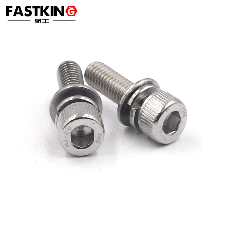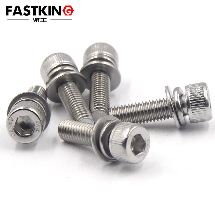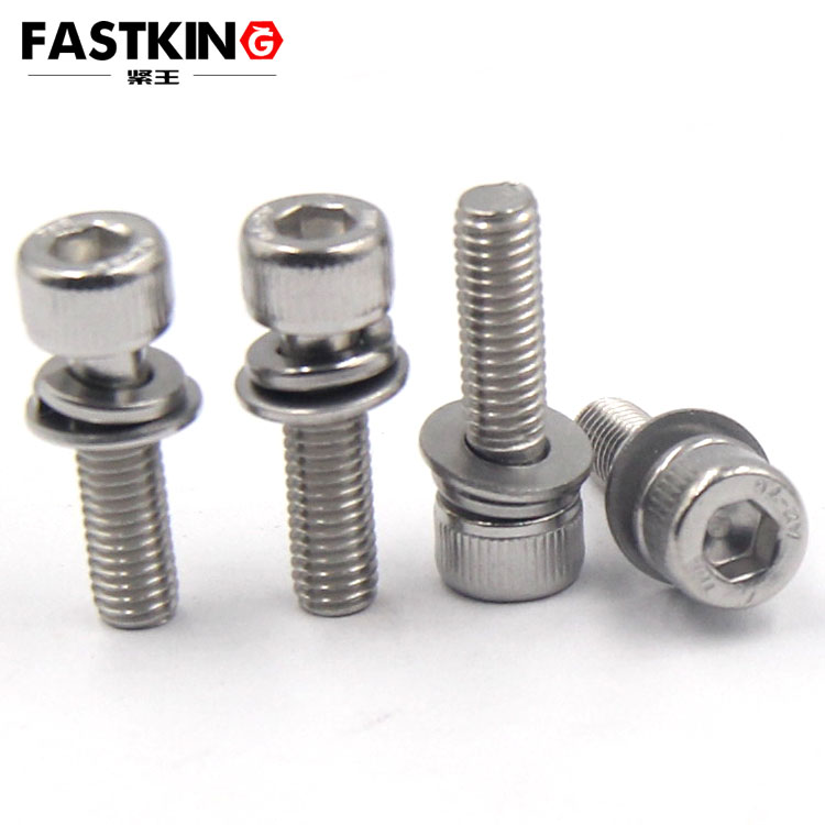 相較于單獨采購螺釘、彈墊、平墊再逐一裝配的傳統方式,圓柱頭內六角三組合螺絲的優勢顯而易見。首先是提升裝配效率,傳統方式需要工人分別取放三種零件,還要調整位置確保對齊,尤其在批量生產中,會浪費大量時間;而三組合螺絲出廠時已將三者預組裝為一體,工人只需一次取件、一次擰緊即可完成裝配,據統計,可將裝配效率提升 30% 以上,大幅降低企業的人工成本。其次是保障裝配質量,單獨裝配時,若工人操作不當(如漏裝彈墊、平墊位置偏移),會導致緊固效果大打折扣;三組合螺絲的標準化組裝的,能確保每個組件都符合規格,避免因人為失誤引發的質量問題。此外,它還能減少庫存管理壓力 —— 企業無需分別儲備三種零件,只需按需求采購組合螺絲,降低了庫存積壓風險與倉儲成本。