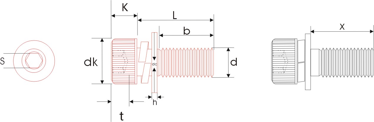 - 產品描述:一個內六角螺釘配一個彈墊和一個平墊,三個緊固件組合在一起形成一個新組件。