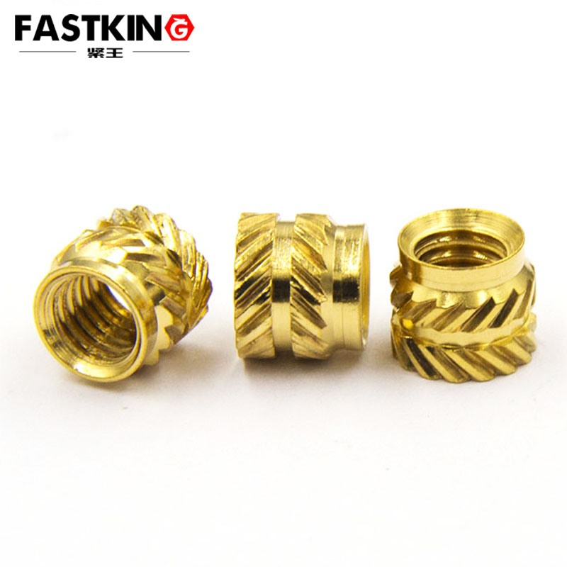 Injection-molded copper nuts: During the injection molding process of the plastic part, the nut is pre-placed in the mold cavity. The molten plastic wraps around the nut and fills the patterns on its surface (such as straight patterns, mesh patterns, or helical patterns). After cooling, the nut and the plastic part become an integrated unit, eliminating the need for subsequent heating and pressing. This type is suitable for mass production scenarios.