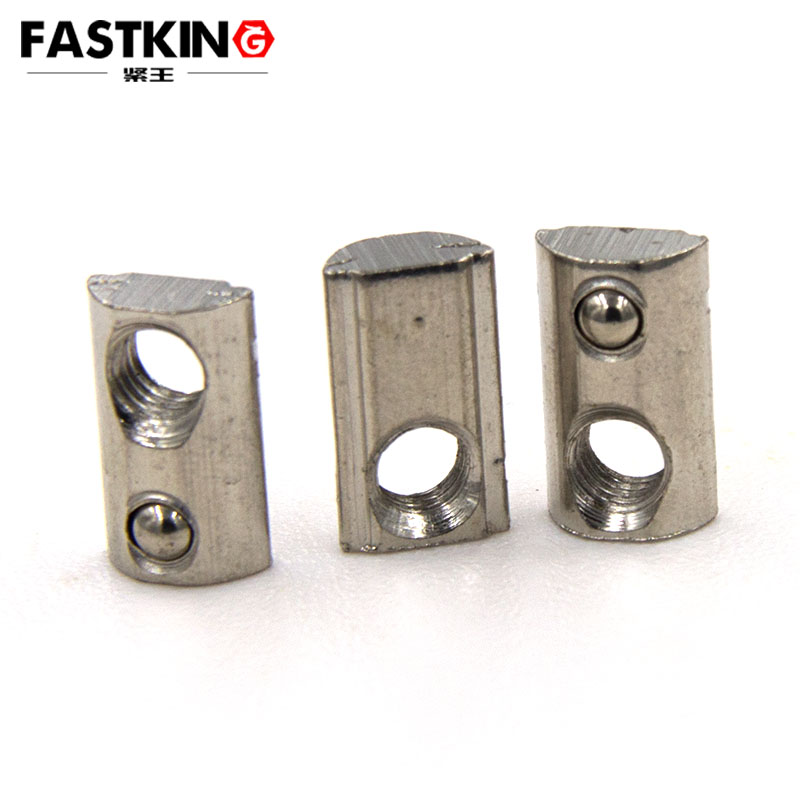 The structural design of the nickel-plated European Standard Type 20 ball nut is ingenious. Its main body is made of high-quality carbon steel, which provides a solid foundation of strength for the nut, enabling it to withstand large external forces without deformation or damage. A spring-loaded steel ball is installed on the back of the nut, which is the key design feature that distinguishes the ball nut from other ordinary nuts. When the nut is installed into the groove of the European Standard Type 20 aluminum profile, the spring-loaded steel ball will tightly press against the bottom of the profile groove under the action of elastic force, thereby firmly fixing the nut at any assembly position inside the groove. This design eliminates the need for special tools or complex positioning steps during the installation of the ball nut, greatly improving installation efficiency.