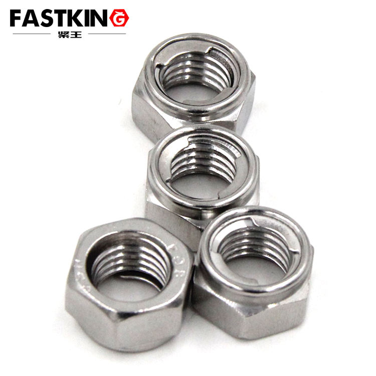 切槽型 (Grooved Type): Axial grooves are cut into the inner thread of the nut, and metal deformation at the grooves forms anti-loosening resistance during assembly.