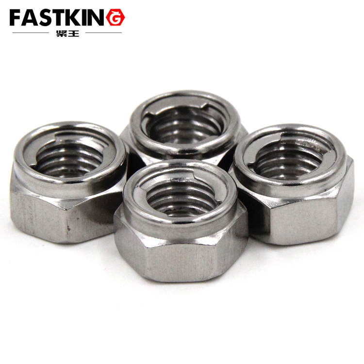 GB6184 explicitly stipulates that the nut material must be all-metal, such as carbon steel (e.g., Grade 8, Grade 10 high-strength steel) and stainless steel (e.g., 304, 316), prohibiting the use of non-metallic components like nylon or rubber. The anti-loosening structure must be achieved through metal plastic deformation, with common forms including:
